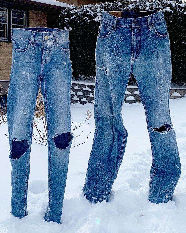 The extreme weather also stimulates funny experiments. For example, Tom Grotting from Minnesota had his jeans trousers freeze six years ago before being put up in the front yard. This polar vortex was the perfect opportunity to try again. Pictures of the funny scene have gone viral this time with the hashtag #frozenpants and his experiment is getting more followed. Tailor-made suits must also be believed in the meantime.