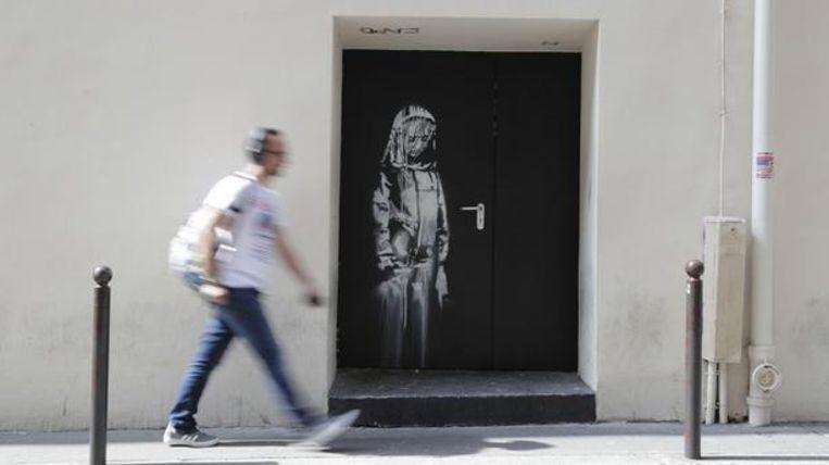 Banksy applied the silkscreen print with white paint to the door of the Bataclan last June. In the hall, on November 13, 2015, 90 people were killed in an attack. The image that the artist put on the door shows a mourning figure. The thieves were filmed by a surveillance camera during their action.