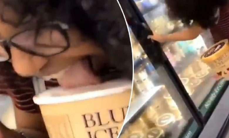 The video shows how a young woman with glasses took the lid off a box of Blue Bell’s brand ice cream and took a stiff lick. Then she puts the box back in the freezer rack and runs away. The images were shared by a Twitter user, who added: “What kind of psychopathic behavior is this?”